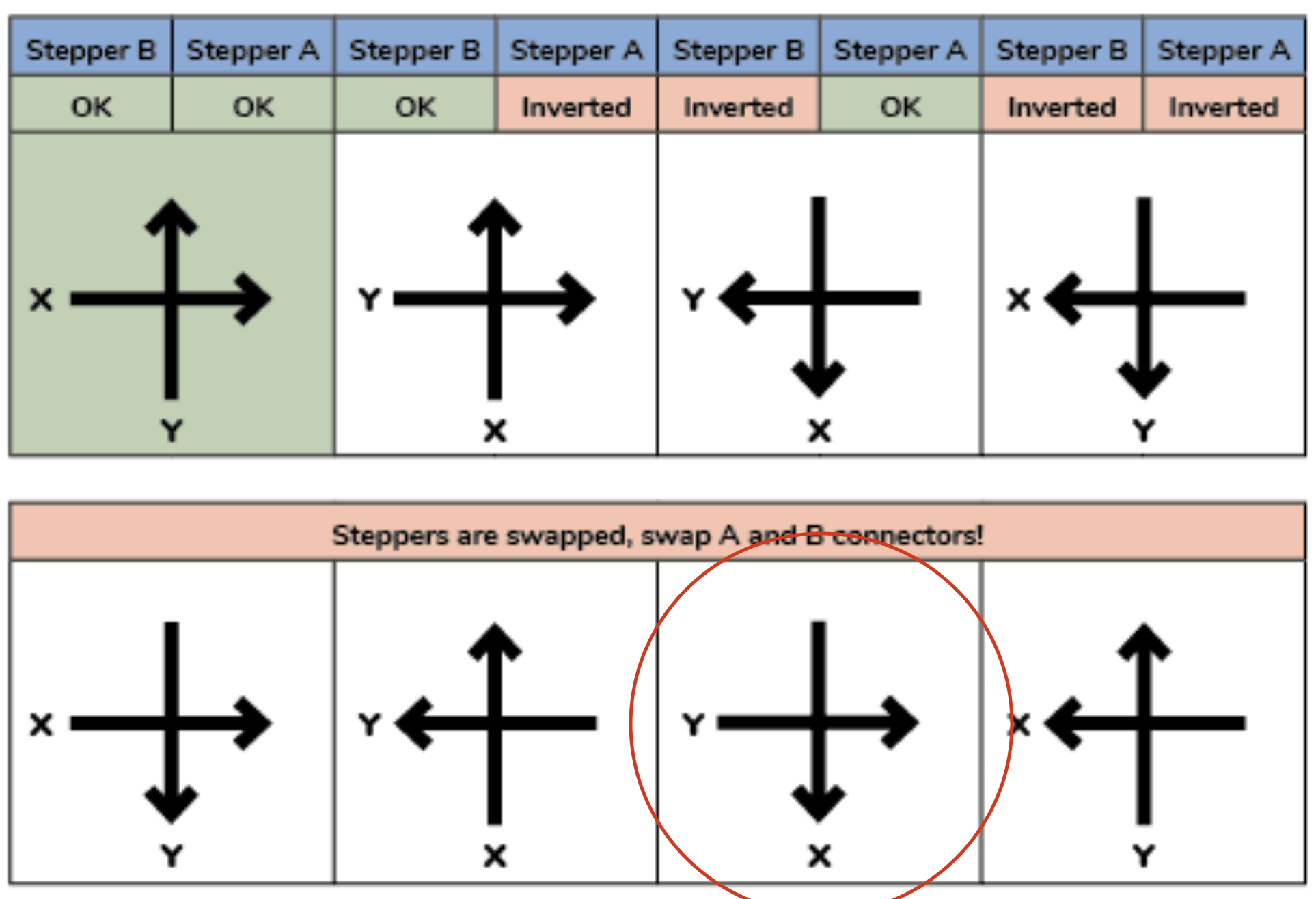 So, it seems my motors are not correctly connected. My Y and X are all messed up like the scenario in the red circle. Gonna have to swap them.